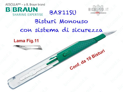 BA811SU Bisturi Monouso Con Lama Fig. 11 con sistema di sicurezza - BBraun Aesculap