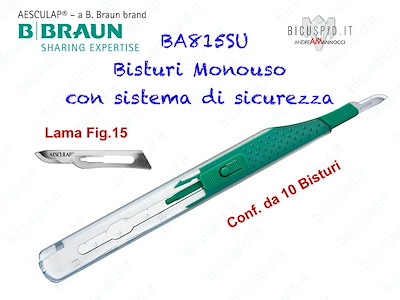 BA815SU Bisturi Monouso Con Lama Fig. 15 con sistema di sicurezza - - BBraun Aesculap