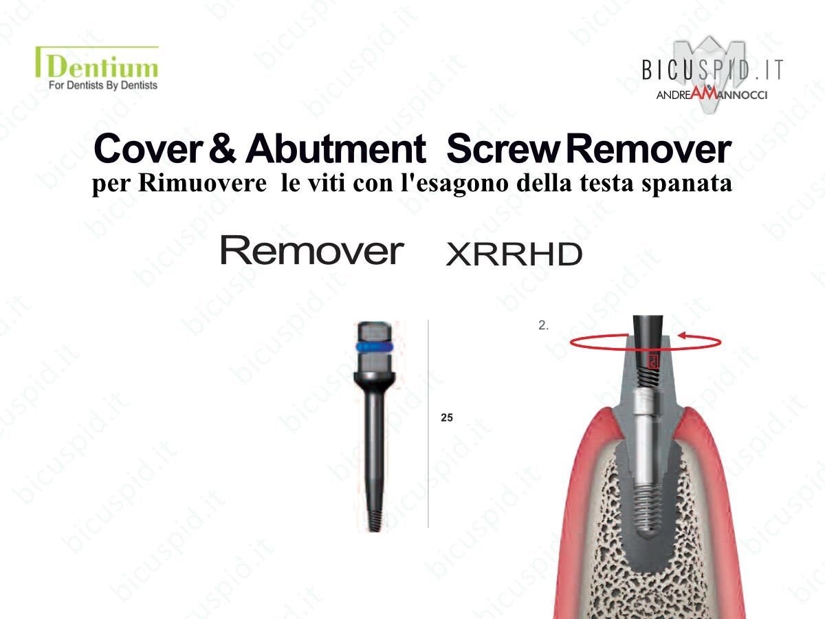 Si consiglia l'uso del cricchetto con ingaggio quadrato codice , spesso presente nei kit di molte casi implantari., oppure ordinando un cricchetto Dentium codice XRFRW