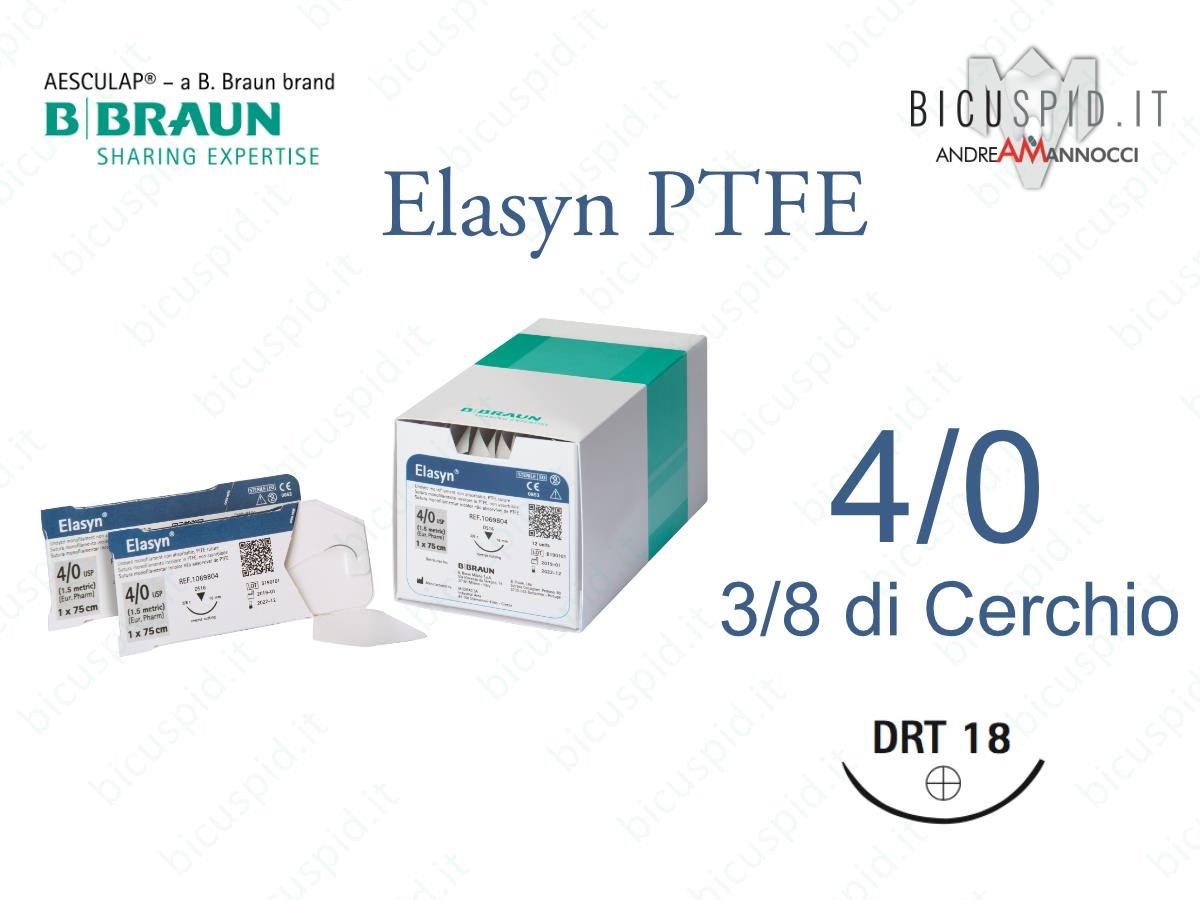 Elasyn 4/0 - 3/8 di cerchio Suture Chirurgiche in PTFE Monofilamento BBraun