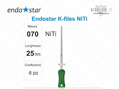 Gli Endostar NiTi K-files sono realizzati in lega di nichel-titanio, sono molto flessibili e sicuri.