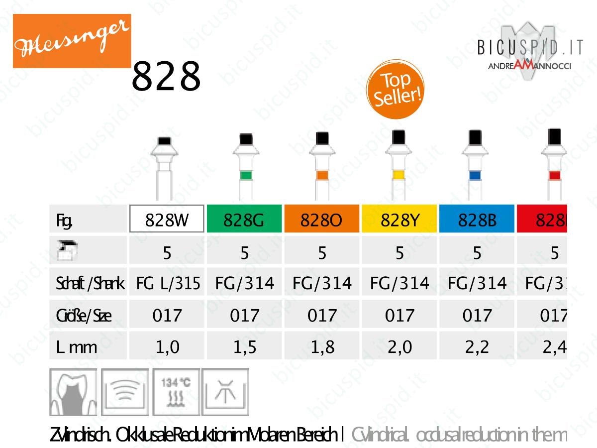 corrispondenti alla corretta riduzione occlusale per vari materiali da restauro. È disponibile anche una fresa da 1,0 mm
