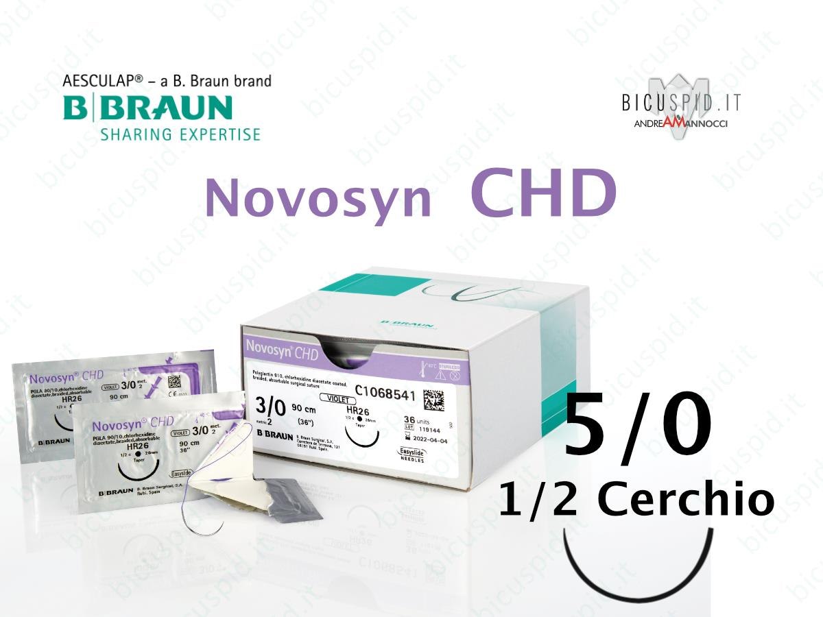 Novosyn CHD 5/0 - 1/2 Cerchio - Sutura Rivestita con Clorexidina Intrecciata ad Assorbimento Medio BBraun