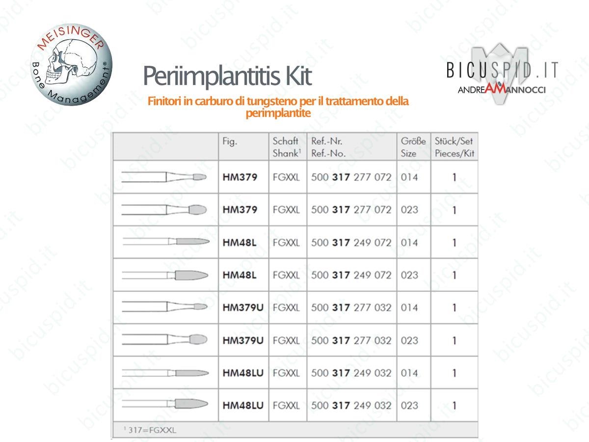 Kit Frese in Carburo di Tungsteno per il trattamento della perimplantite Meisinger 2575