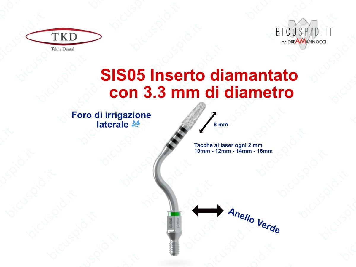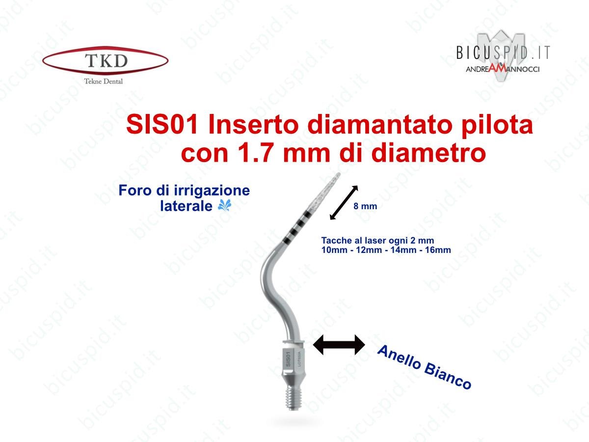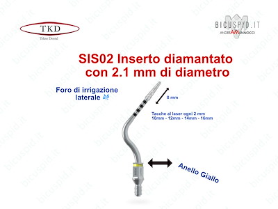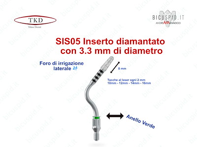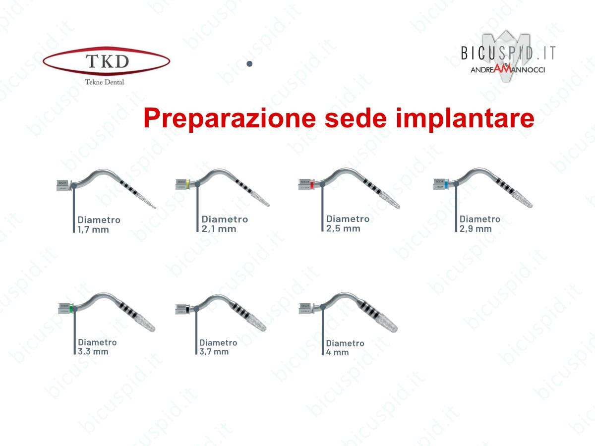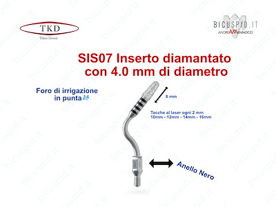 Tutti gli inserti hanno una parte diamantata della lunghezza di 8 mm e tacche marcate al laser ogni 2 mm, a 10, 12, 14, 16 mm facilmente identificabili, per monitorare l'approfondimento nell'osso.