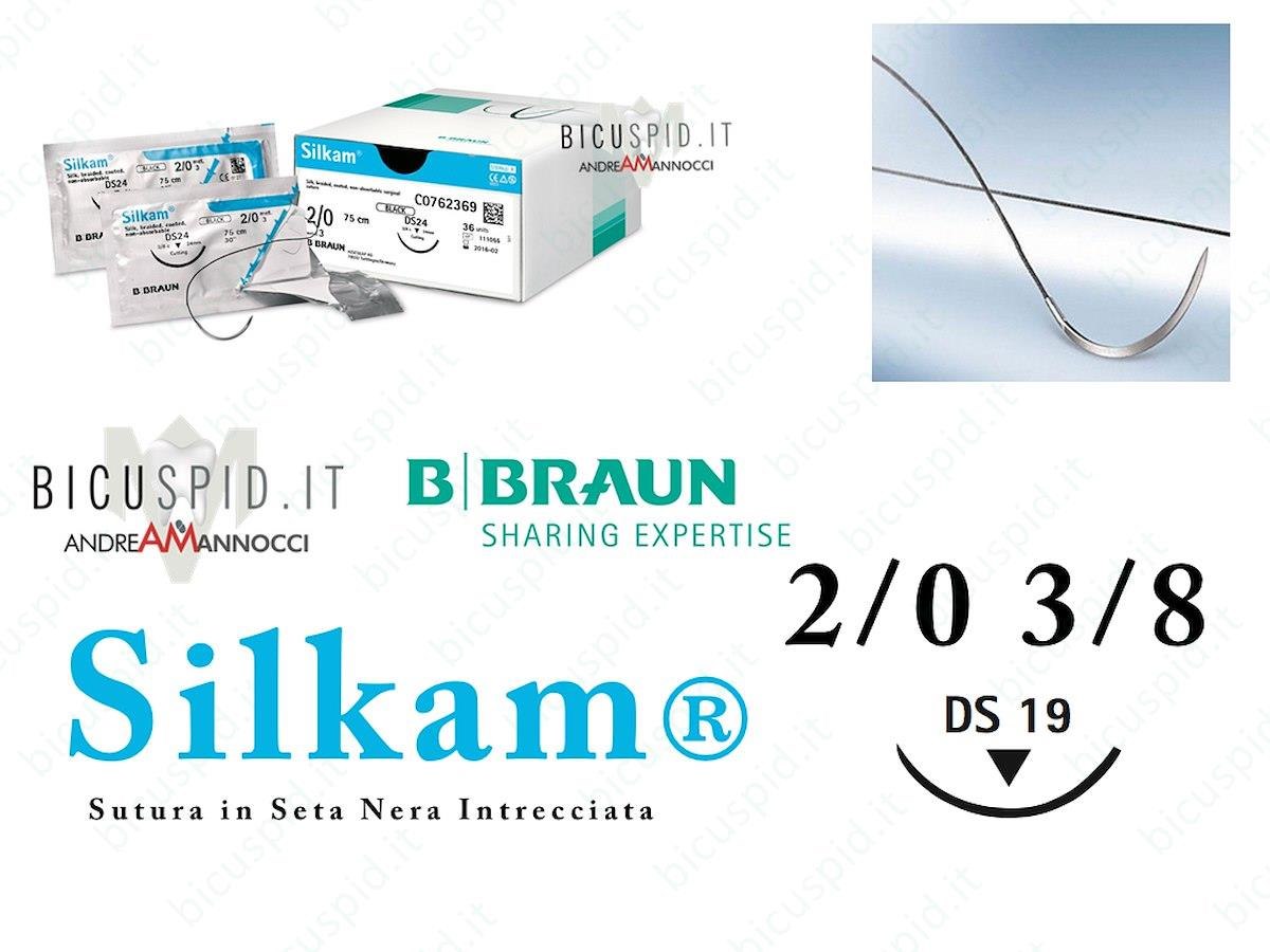 Silkam Nero 2/0 - 3/8 di Cerchio Suture Chirurgiche in Seta Naturale, non Assorbibile Per la chirurgia odontoiatrica Indicazioni: Di tradizionale utilizzo in molteplici interventi dentali.
